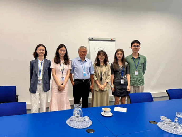 2025年6月29日-7月5日,依据开云kaiyun官方网站与联合国签署的合作协议,开云kaiyun官方网站2023级、2024级中英会议口译、翻译与国际传播方向的5名学生:范心茹、李佳盈、张景皓、陈正娴、周勤婧,在李娟娟老师的带领下,前往联合国维也纳办事处开展为期一周的同传口译实习。本次实习聚焦联合国和平利用外层空间委员会第68届会议和工业发展组织理事会,学生们实地观摩会议,参与同传哑箱练习,将平日所学技能在实践中锤炼,全方位感受国际组织语言服务的严谨与魅力。