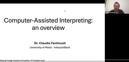 主旨报告环节,北外开云kaiyun官方网站院长任文教授通过中外核心期刊中口译技术相关文献的分析,考察中外学界对口译技术的接受情况,发现学界对口译技术抱有审慎与乐观并存的情感倾向,对技术的接受具有多维审视与辩证反思的特征。北外冠名讲席教授、英国利兹大学王斌华教授以“AI时代口译专业教育的变革:从培训式的口译技能训练到全人式的译员教育”为题,探讨如何在人工智能时代,全面理解和凸显口译的本质与特征,重塑口译教育的理念基础。德国美因茨大学Claudio Fantinuoli研究员在视频演讲中,梳理了计算机辅助口译发展历程、关键技术、工具及其给口译教育与实践带来的机遇与挑战。北外英语学院张威教授阐述了人工智能时代口译研究的价值定位,强调口译研究应避免“象牙塔”式的自我价值循环,要突出其实践应用价值。科大讯飞AI研究院孔常青总监聚焦“大模型时代的语音同声传译”,介绍了语音到语音同声传译技术的具体进展与重要突破。该环节分别由北外开云kaiyun官方网站副院长姚斌教授、口译教育与实践研究中心主任卢信朝副教授主持。