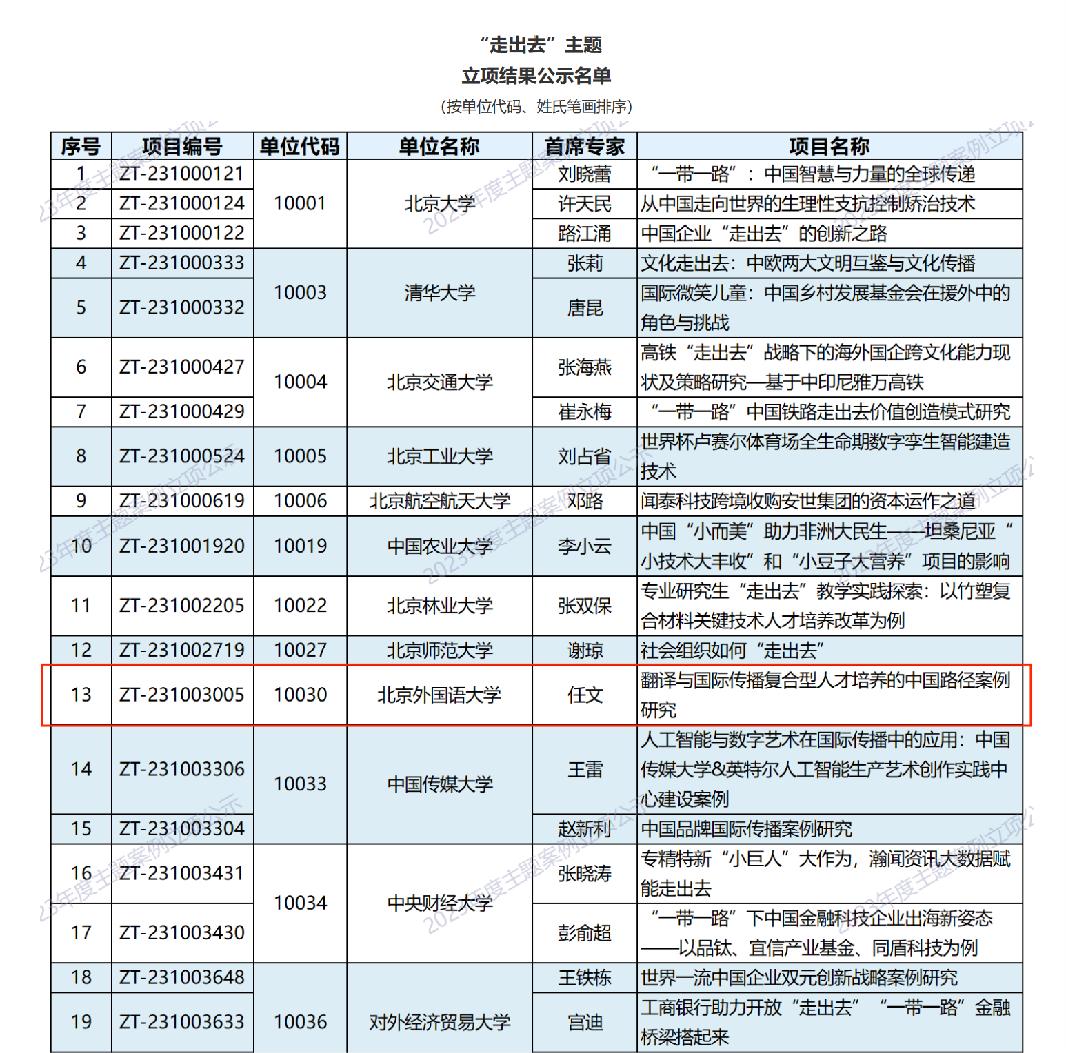 开云官网任文教授作为首席专家,赵田园、朱玉犇、江璐三位老师作为项目组成员申报的《翻译与国际传播复合型人才培养的中国路径案例研究》获得“走出去”主题立项(项目编号:ZT-231003005)。