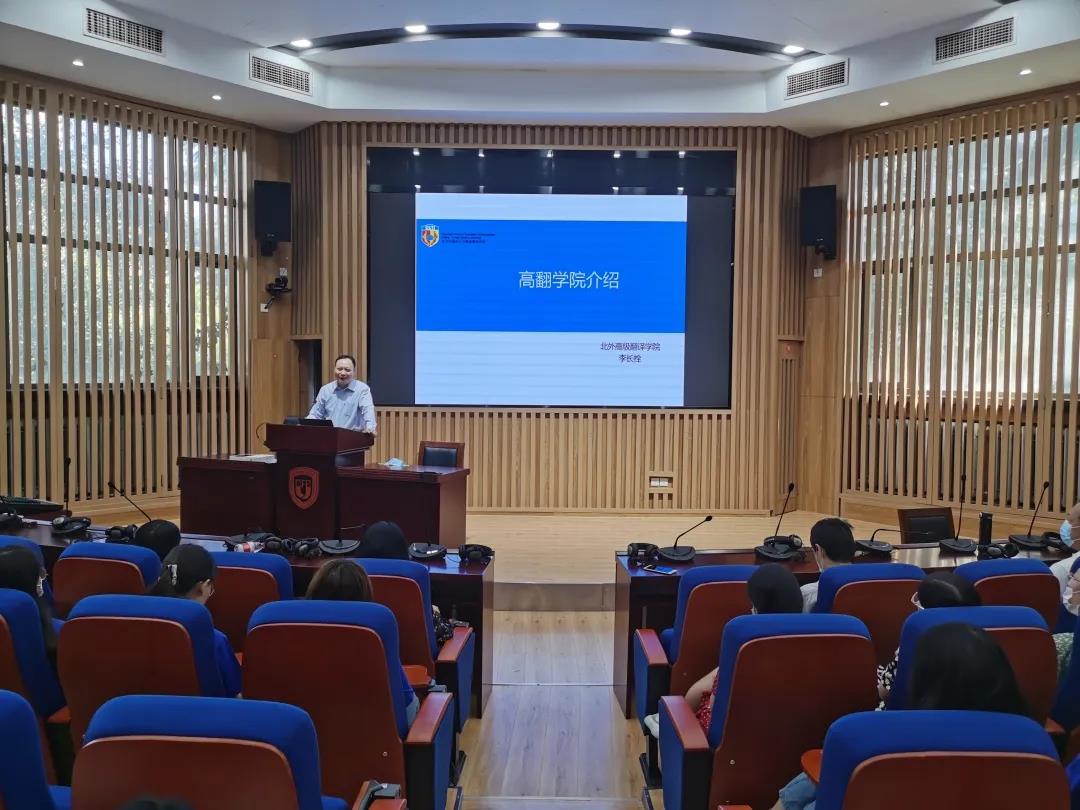 姚斌副院长阐述了为师者的责任、教学相长的关系及在学习中师生互动的重要性,用生动的比喻寄语同学们,作为一名合格的翻译者所应具备的灵活的思维模和方式方法,分享了自己在专业学习上的体会和经验。