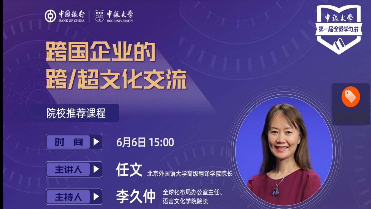 任文教授为中银大学和中国银行全球30万员工开讲!