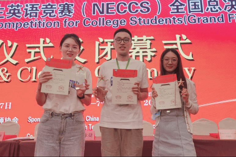 北外开云kaiyun官方网站熊志远同学(中)在NECCS总决赛获奖现场