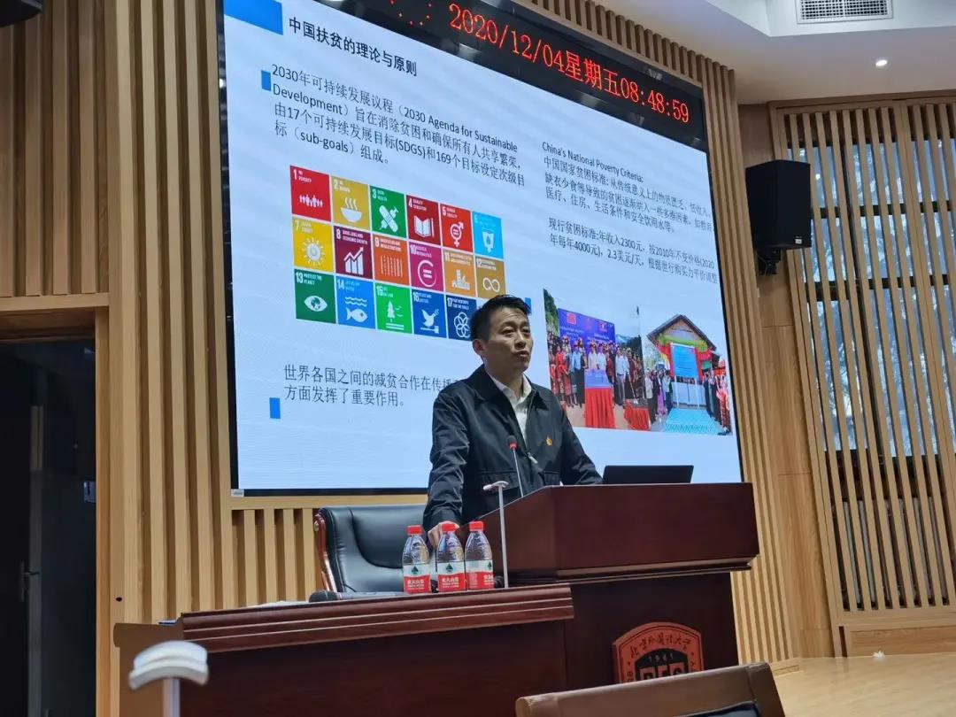 2020年12月4日上午,开云kaiyun官方网站举行《中国扶贫在路上》主题分享交流活动,学院教师曲强副教授以《中国精准扶贫事业的主要做法、成就和体会》为题与同学们分享了他在中国国际扶贫中心的工作经历。