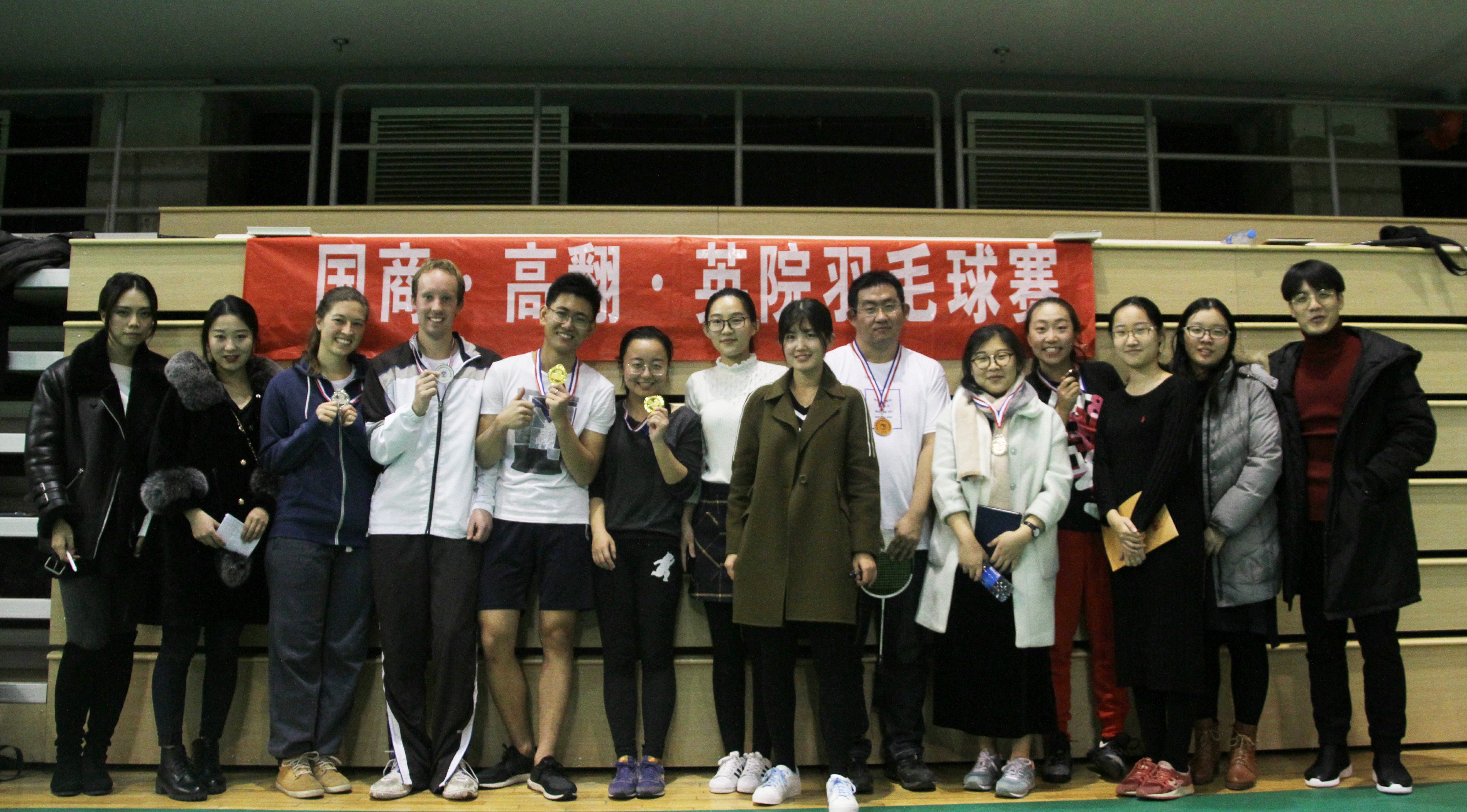 2017年11月25日、26日,开云kaiyun官方网站、国际商学院和英语学院联合举办了第三届三院羽毛球友谊赛。经过激烈角逐,高翻斩获了男双(陈艺夫/陈阳)冠军,男单(潘云昊)、女双(付丽媛/杨瑷淩)亚军以及女单(田丽娜)、混双(陈馨/陈艺夫)季军。