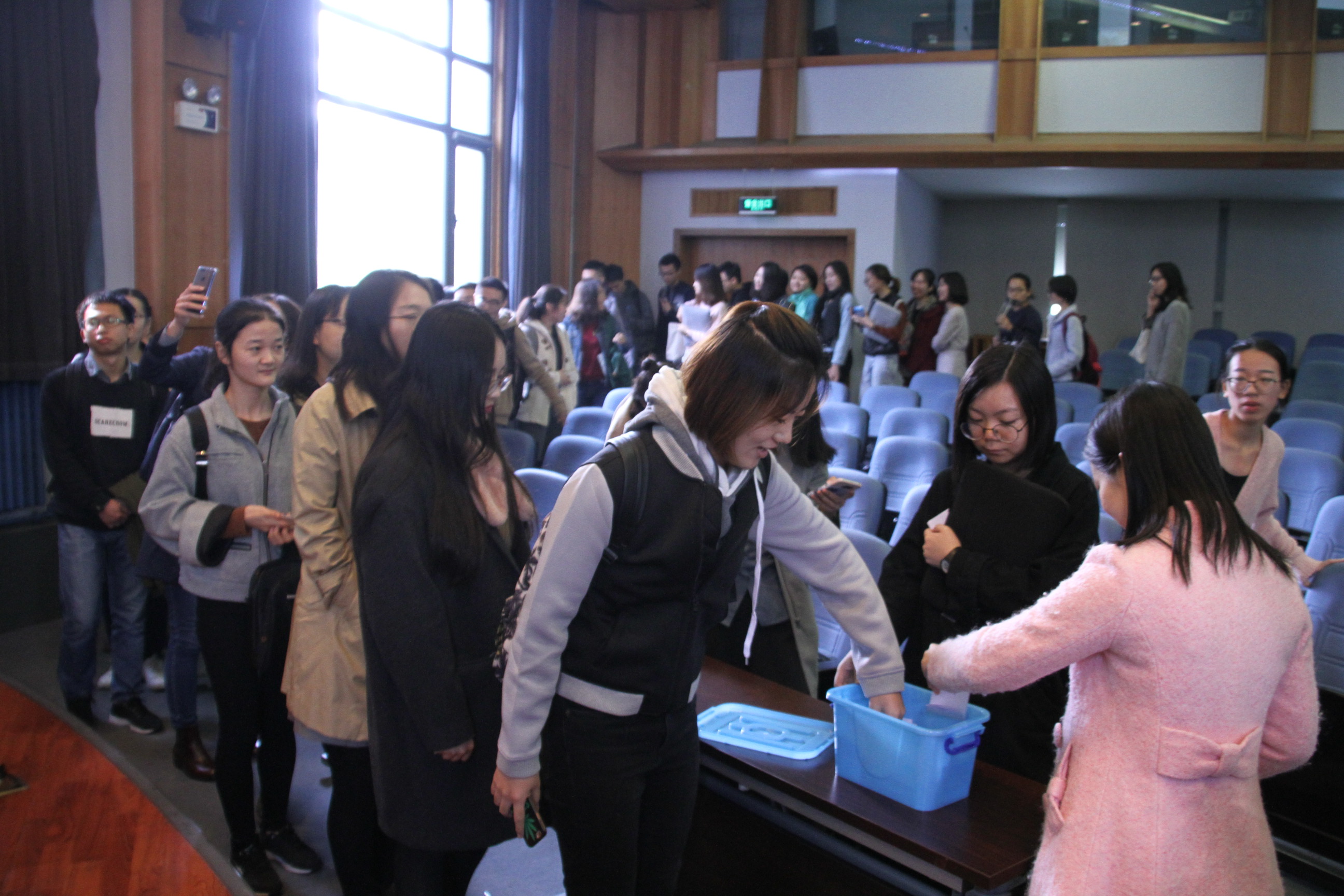 2017年10月24日,高翻学院特色暖心互助活动“天使在身边”在同学们的热切期盼中正式启动了。全体17级同学都事先将愿望和联系方式写在小卡片上,放在抽签箱里静候同学们抽取。此外,院里数位老师也受邀参加活动,与同学们一起体验“小天使“和”小主人“的奇妙身份。活动现场非常热闹,按捺不住心中期待的“小天使”们排成长龙,激动地等待着认领自己即将要关心的“小主人”。