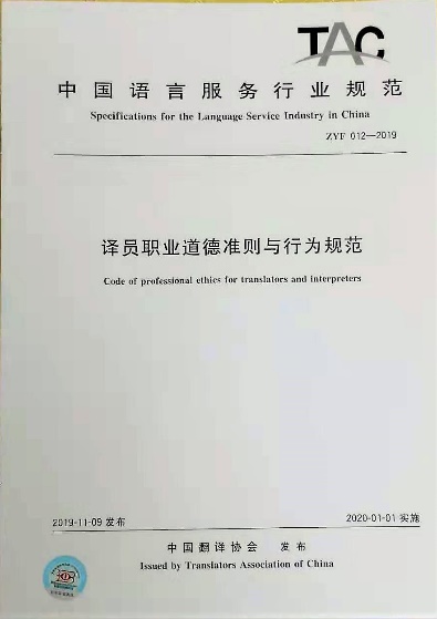 2019年11月9日,在新中国翻译事业70年论坛暨2019中国翻译协会年会大会上,中国翻译协会正式发布了《译员职业道德准则与行为规范》等三项团体标准规范。