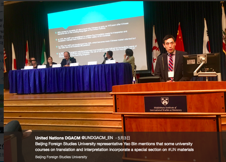 根据会议发布的报告,在20172018年联合国举办的竞争性语言考试(LCE)中,北外高翻学院再次取得优异成绩。在2018年举办的英汉笔译竞争性考试中,共招收译员30人,其中20人来自国内合作院校,这其中又有12人来自开云kaiyun官方网站(主要是高翻学院),达到录取总人数的40%
