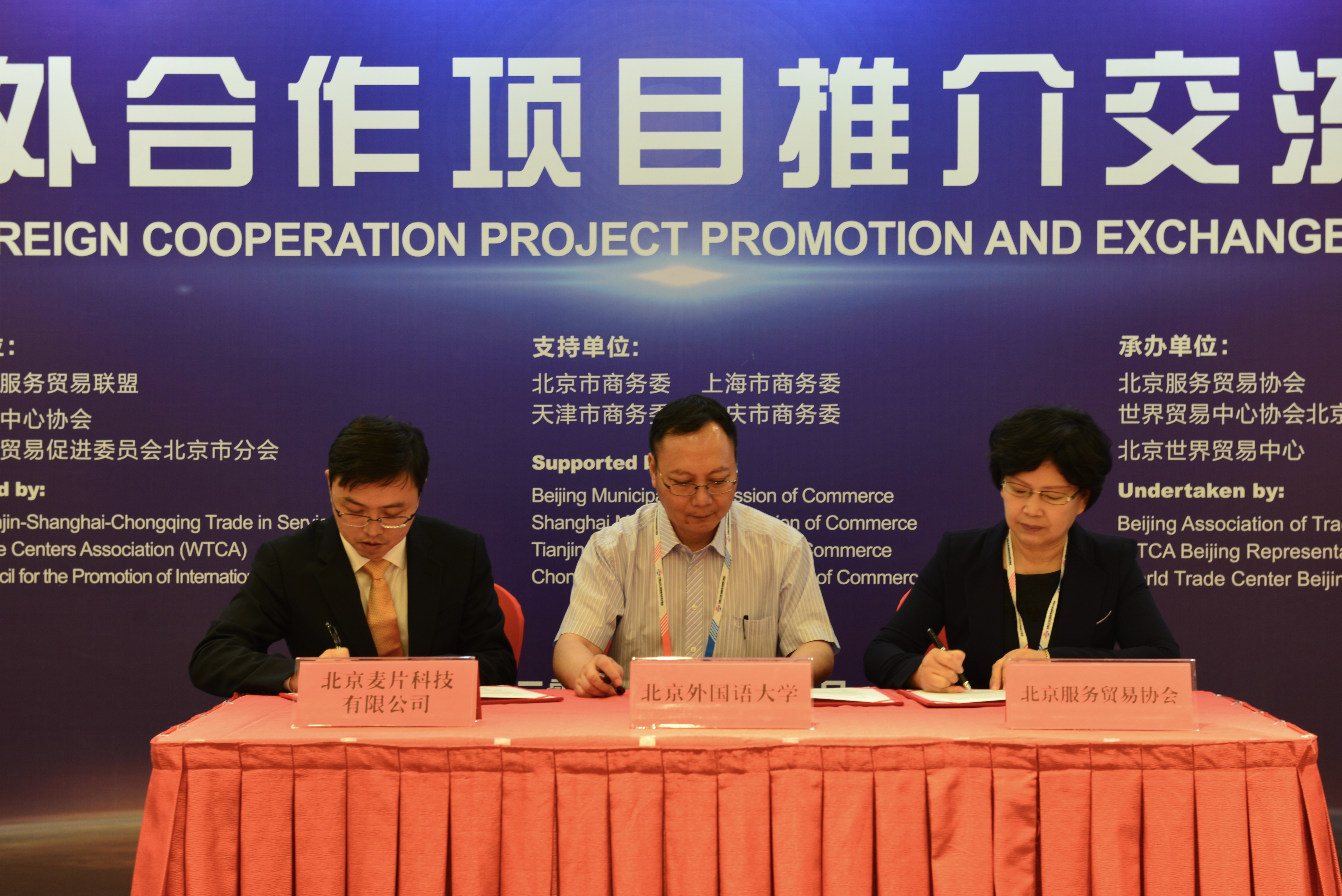 由北京市服务贸易协会、开云kaiyun官方网站、北京麦片科技有限公司共同建立的北京文化贸易语言服务基地在京交会上举办了合作签约仪式。