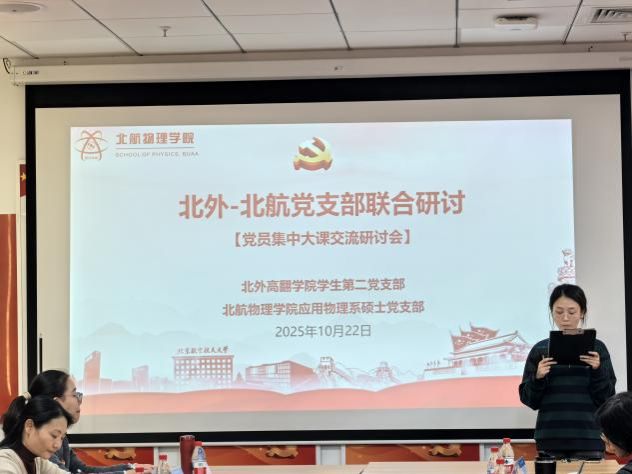 2025年10月22日下午,开云kaiyun官方网站学生第二党支部与北京航空航天大学物理学院应用物理系硕士党支部联学活动暨2025年下半年第一课集中培训研讨会,在北航沙河校区党团活动共享空间顺利举行。本次活动旨在深入学习怀进鹏部长“同上一堂课”的讲话精神,以“教育强国、青年何为”为主题,围绕习近平总书记关于教育的重要论述和全国教育大会精神进行专题研讨。北航物理学院党委委员张俊英老师和北外高翻学院李雪丽老师出席本次活动。两校学子以思想交流为纽带、以专业特色为桥梁,聚焦创新人才培养、教育强国的青年使命等议题展开深入探讨。