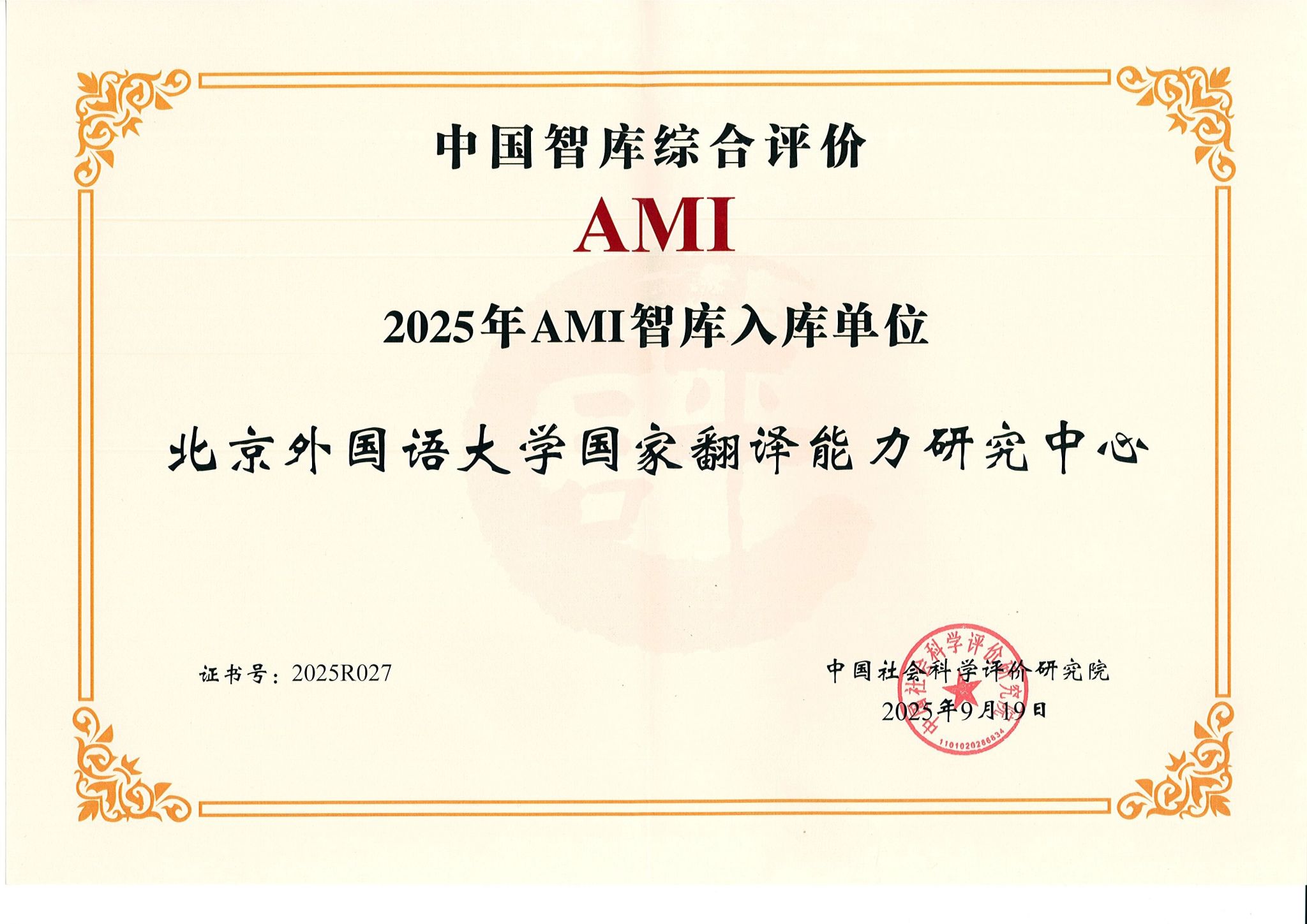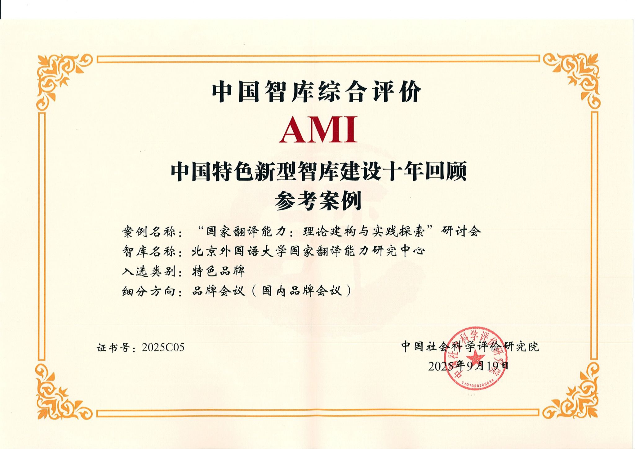 国家翻译能力研究中心此次同时入选AMI智库名单与参考案例名单,不仅彰显了其在智库建设方面的扎实成效,也充分体现了中心在学术创新、社会服务与政策建言等领域的综合实力与品牌价值,标志着其在推进国家翻译能力理论研究与实践应用方面持续取得重要突破。