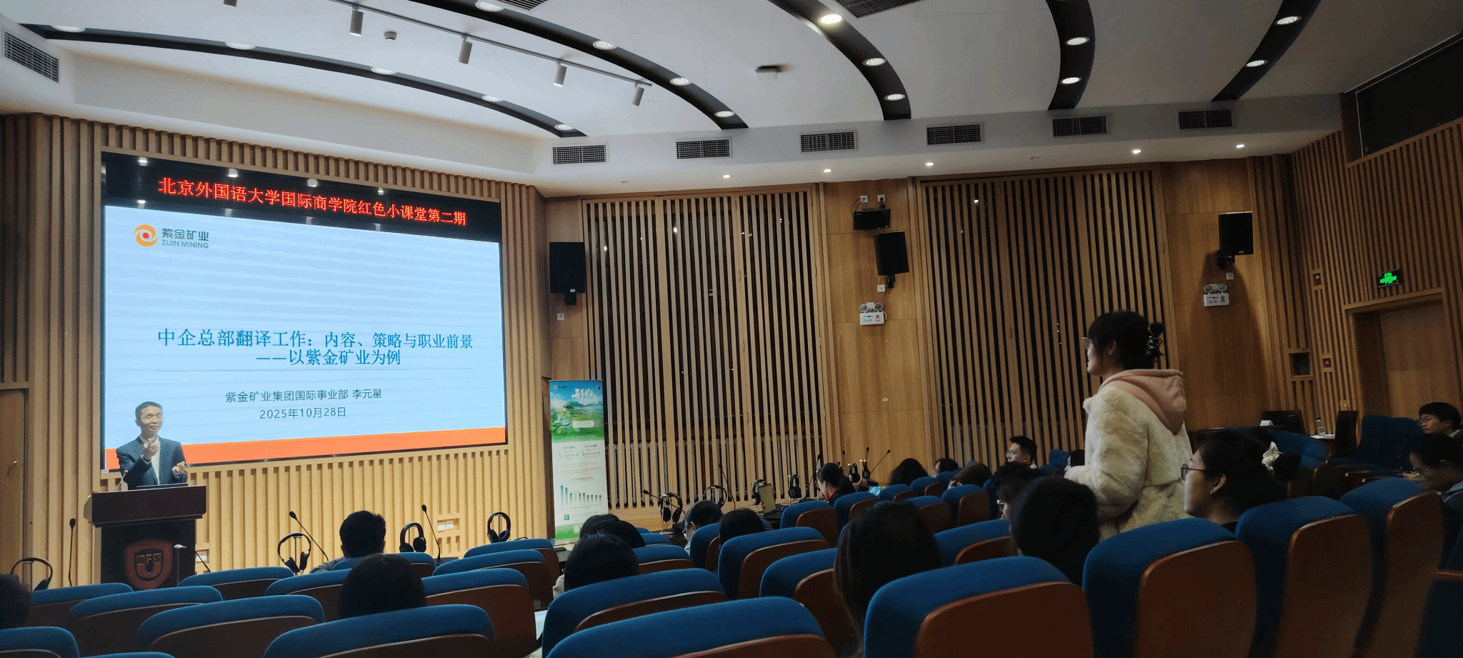 宣讲会上,紫金矿业集团就企业发展概况、译员岗位要求、职业成长机制、薪酬福利体系及未来发展前景等内容作了全面介绍。国际事业部高级翻译李元星先生特别指出,当前人工智能的快速发展并未削弱企业对翻译人才的需求,反而对翻译质量提出了更高要求。因此,译员需积极掌握人工智能、计算机辅助翻译(CAT)等新技术,持续提升专业能力,以适应日益提高的行业标准。